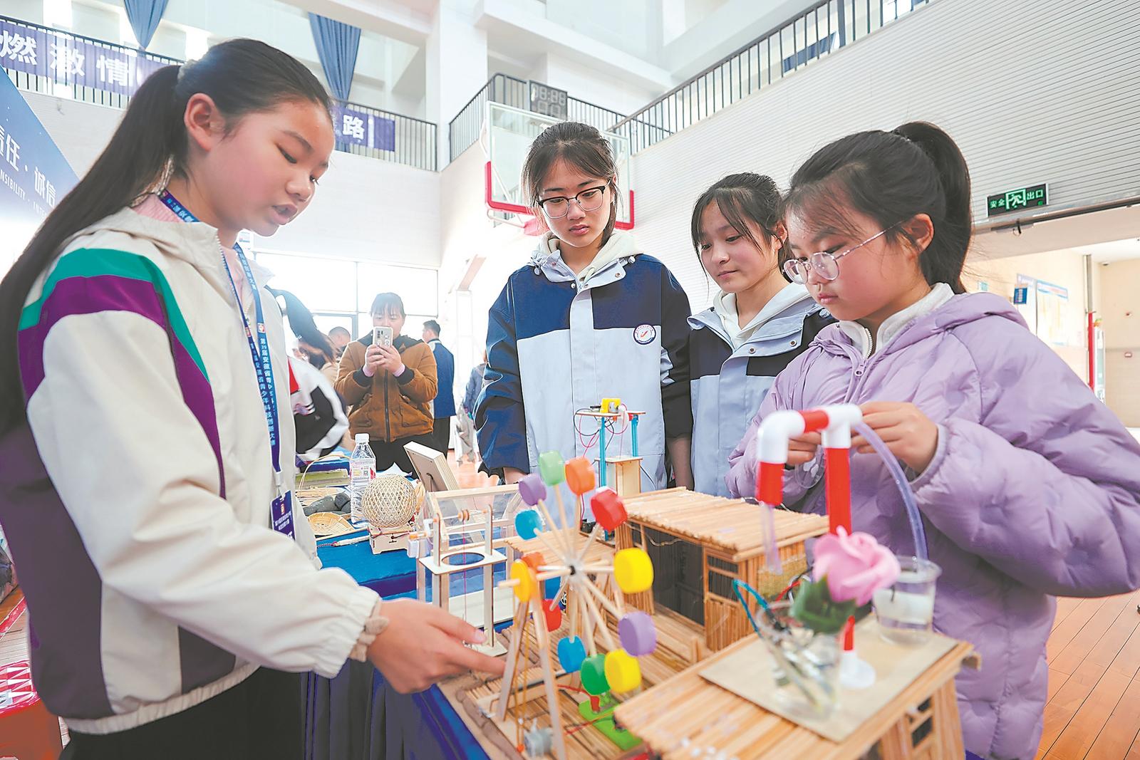 3月30日,安徽省第39届青少年科技创新大赛在淮北市濉溪县第二中学开幕。当日,全省335个青少年科技创新成果作品、174个科技辅导员科技教育创新成果作品展开角逐。通讯员 冯树风 摄