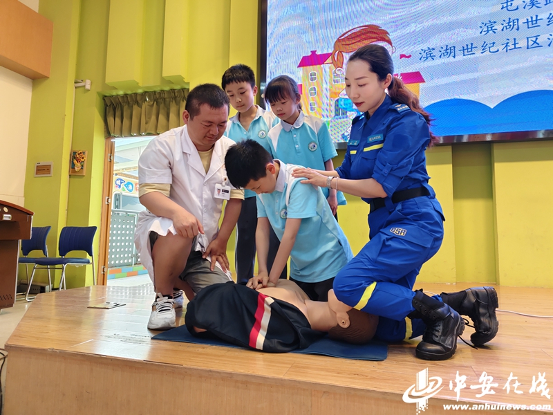 中安在线、中安新闻客户端讯 为全面深入地抓好校园安全管理和防灾减灾教育,进一步增强少年儿童应急避险及安全疏散意识,提高儿童在突发灾害事件时的应急反应、自救能力,5月10日下午,清枫居委会、金翰居委会联合合肥市滨湖医院、合肥市蓝天救援队、屯溪路小学滨湖校区共同开展“防灾减灾进校园 筑牢安全教育网”防灾减灾日主题活动。