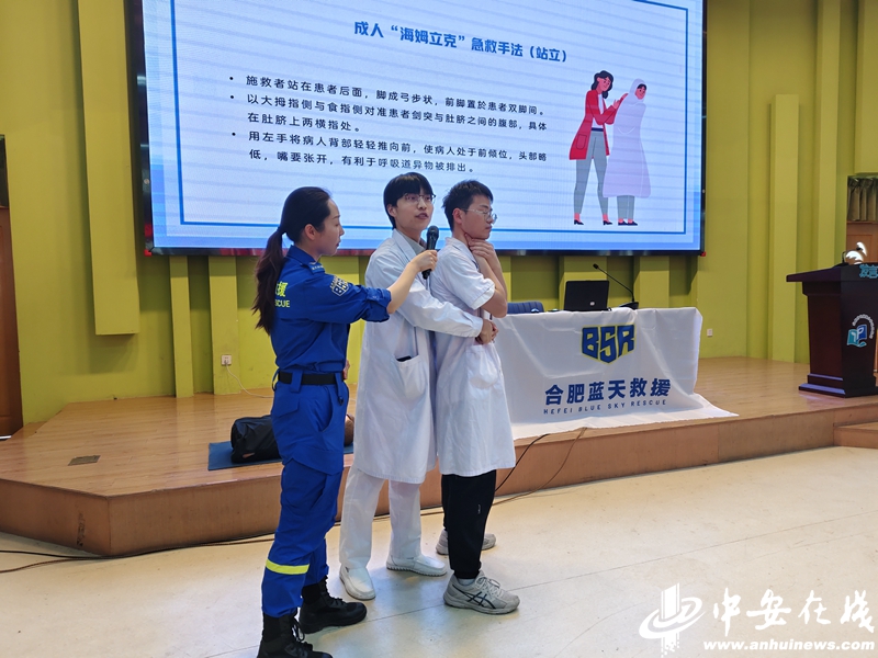 活动中,滨湖医院和蓝天救援队的志愿者通过播放动画视频、PPT图片讲解、知识竞答等方式,让孩子们明确地震应急演练的必要性和基本步骤,熟悉应急避震和安全疏散的方法,灾难来临时的逃生路线等。志愿者通过现实场景模拟,让孩子们近距离了解救援装备、心肺复苏术以及海姆立克急救法等应急救援技能。现场互动问答,增强小朋友们的求知欲、探索欲,使小朋友们能掌握基本的应急避险和自救互助的能力。