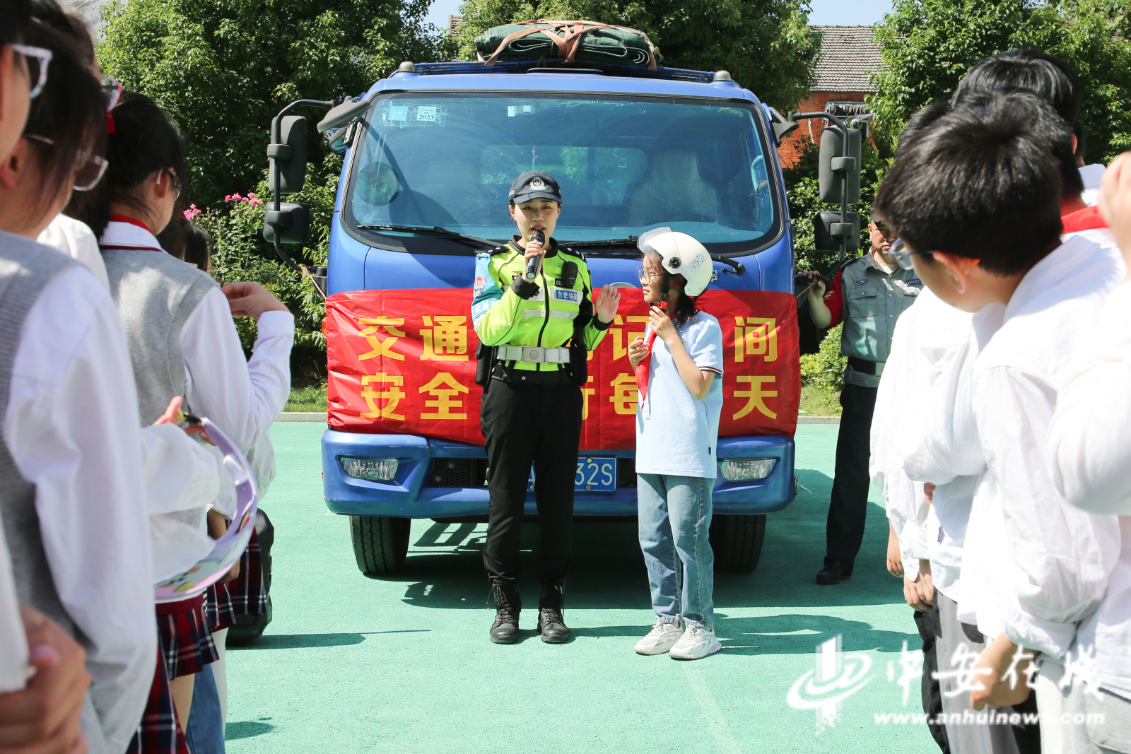 交警通过以案释法、讲解发生在身边的交通事故典型案例,与文明乘车、安全驾车等注意事项结合起来,告诫广大师生不乘坐违法车辆、远离大货车等交通安全常识,结合《中华人民共和国道路交通安全法》实施20周年,以“法润平安·文明相伴”为主题,开展系列宣传教育活动。(汪宜胜 记者 刘玉才)