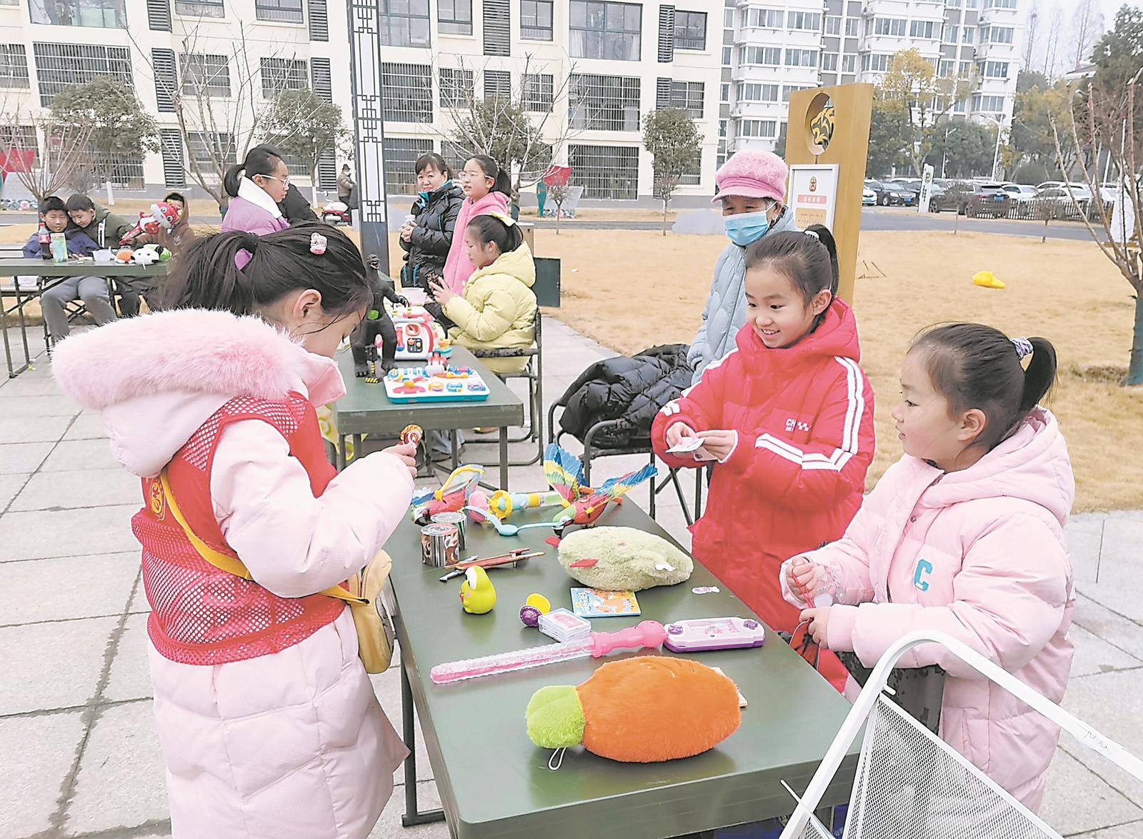 2月12日,滁州市南谯区银东社区“小太阳”志愿服务队开展爱心义卖活动,约40名社区小志愿者将自己心爱的书籍、玩具等物品义卖,所得善款用于帮助社区留守儿童。通讯员 董超 王阳 摄