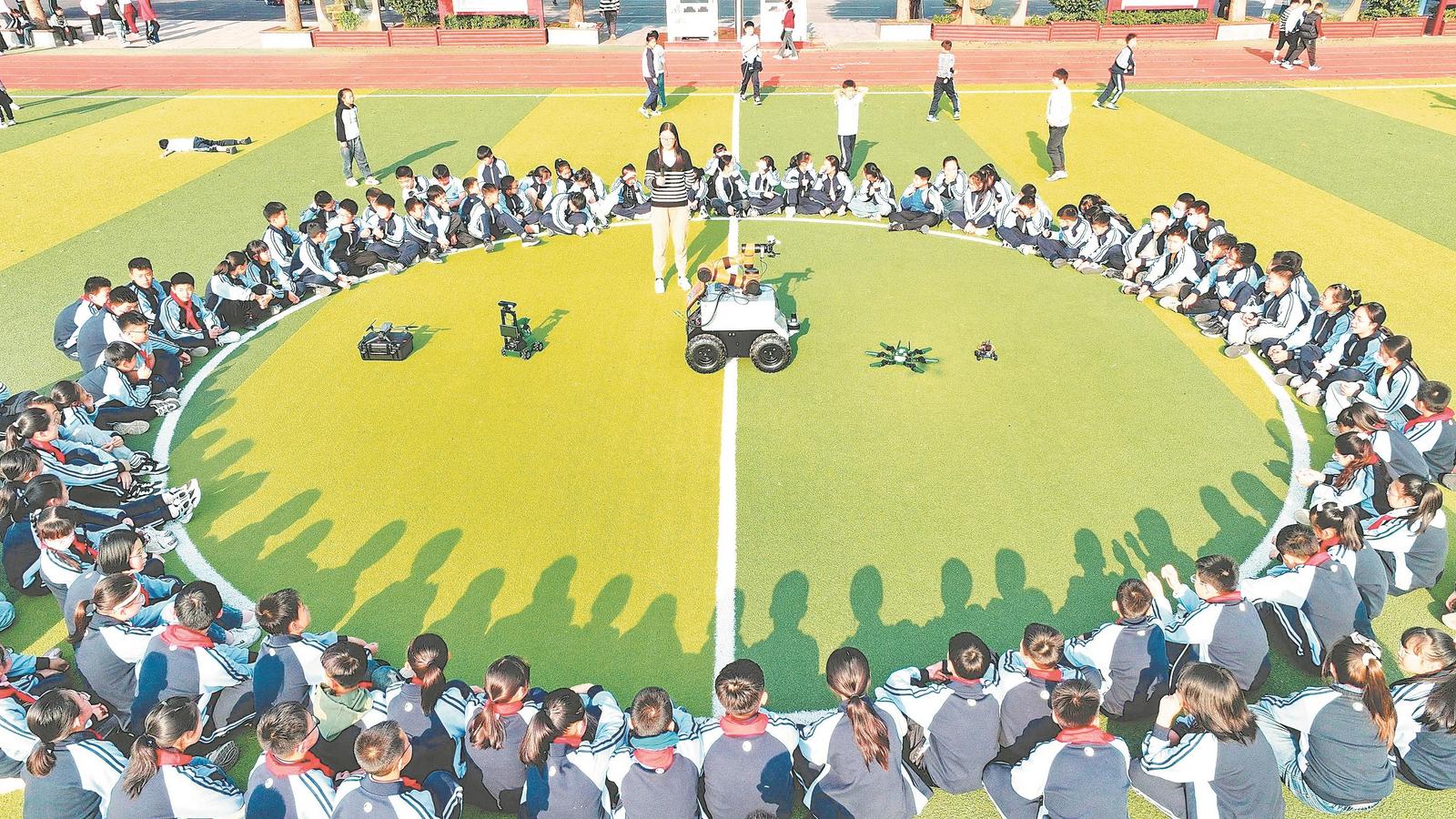 2月13日,在滁州市紫薇小学,国网滁州公司工作人员为学生们讲解智能机器人工作原理。新学期伊始,国网滁州市供电公司滕飞劳模工作室工作人员走进校园,搭建科技活动平台,让学生们零距离感受科技魅力。通讯员 宋卫星 摄