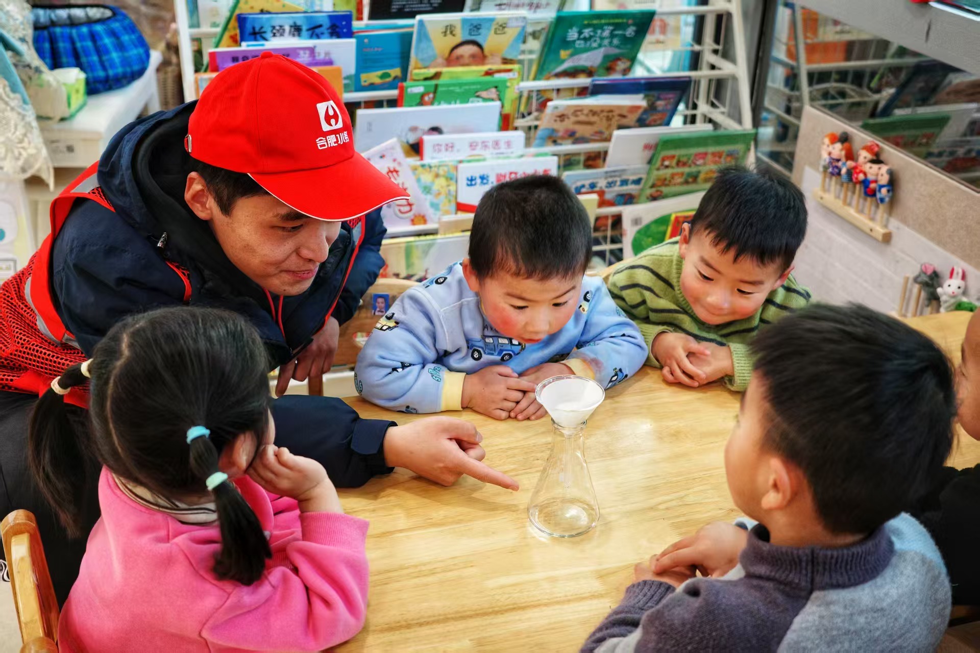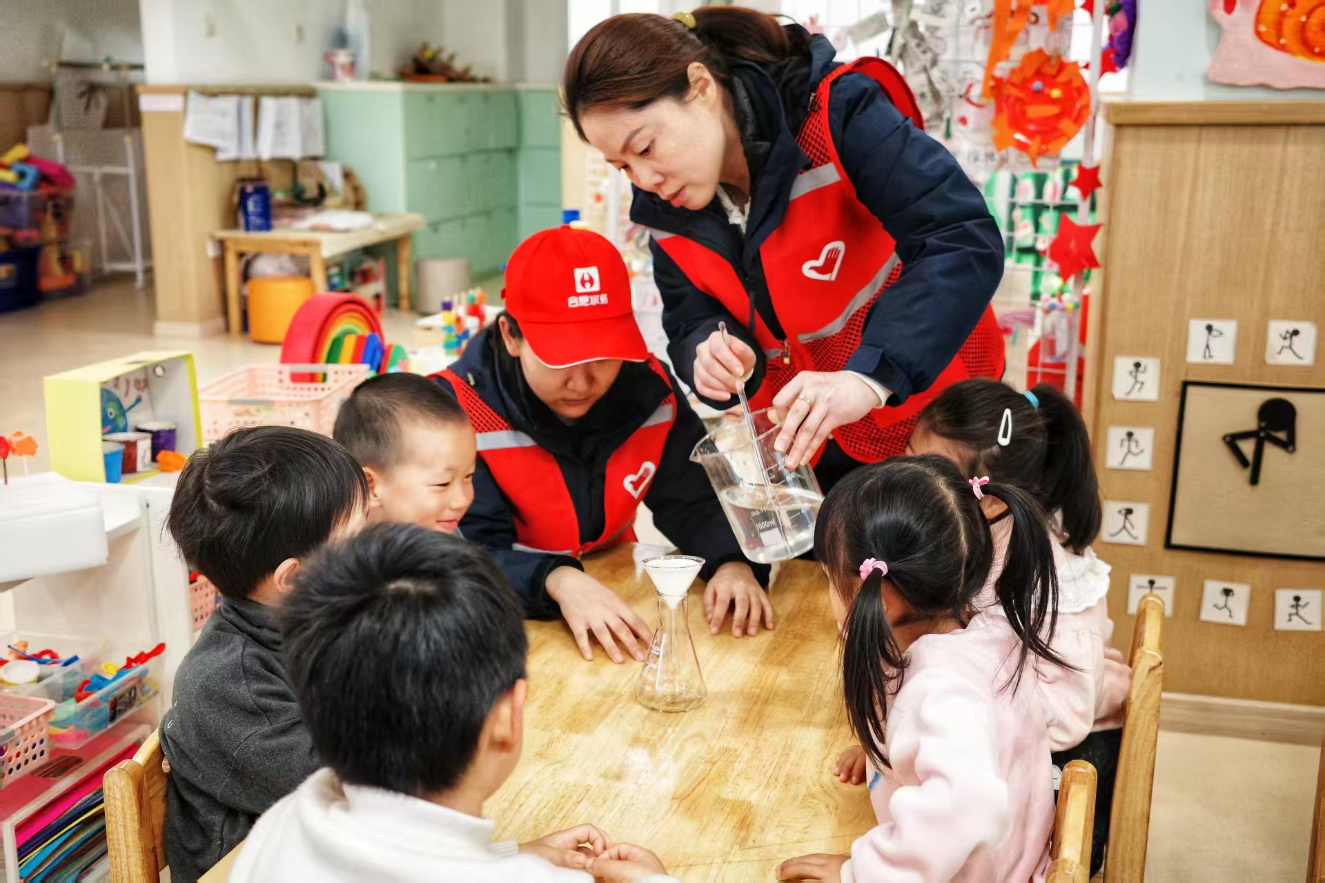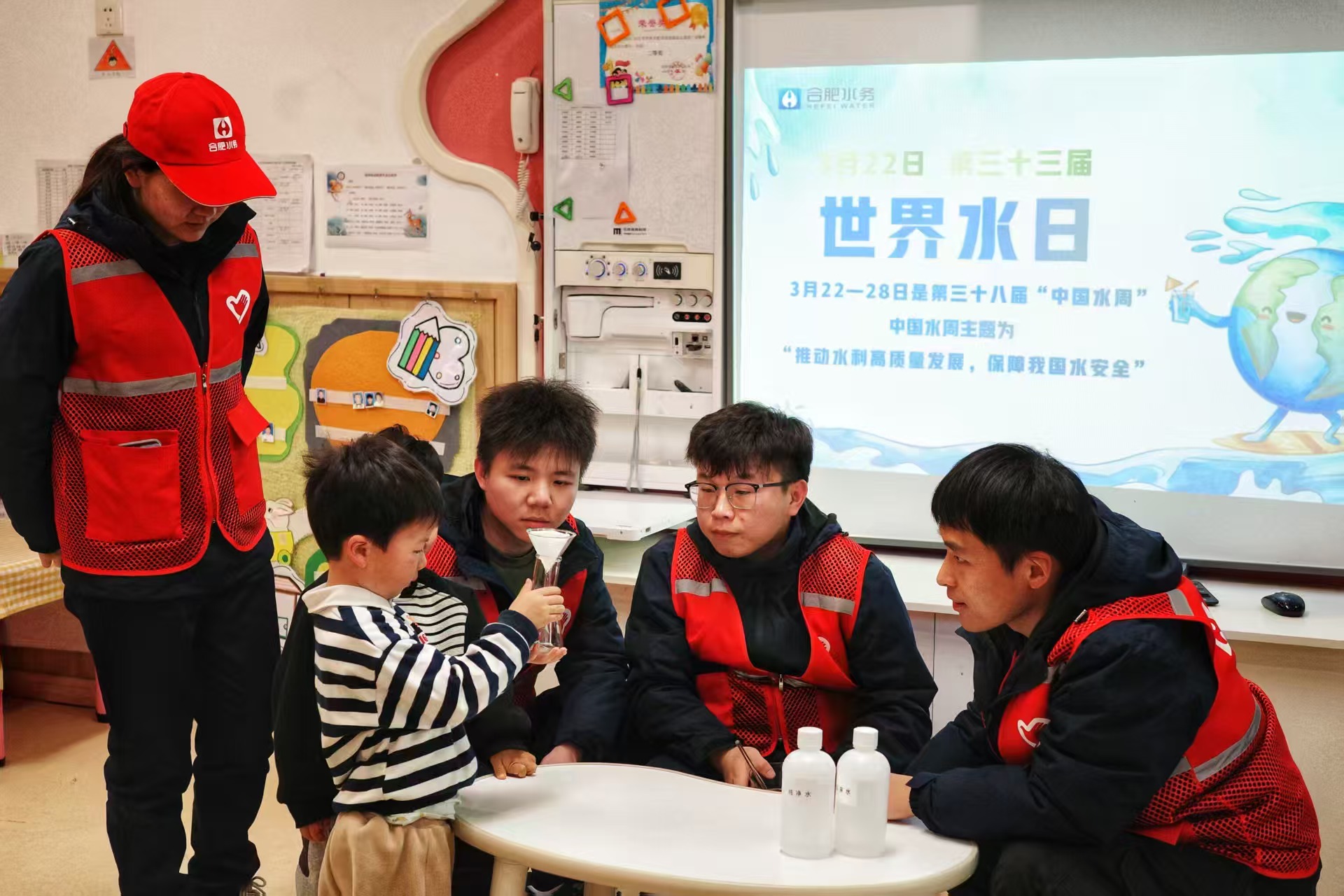 科学实验环节将活动的气氛推向高潮。志愿者们带来了简易的制水实验装置,现场为孩子们演示了水的净化过程。孩子们围坐在一起,目不转睛地观察着实验的每一个步骤,从浑浊的水逐渐变得清澈,他们惊叹不已,好奇心大发,纷纷举手提问,志愿者们一一答疑解惑。通过直观的实验,孩子们不仅了解了制水生产的复杂过程,更深刻体会到每一滴干净水的来之不易,从而增强了节约用水的意识。