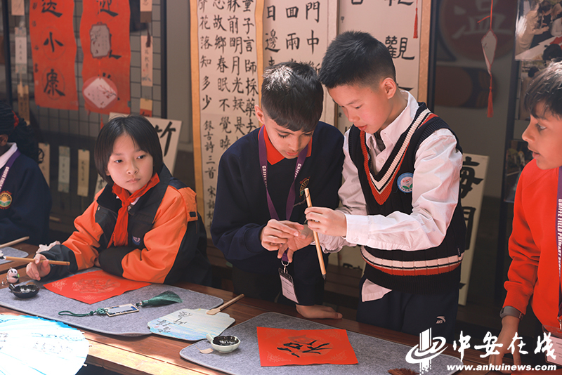 中英学子共同书写福字