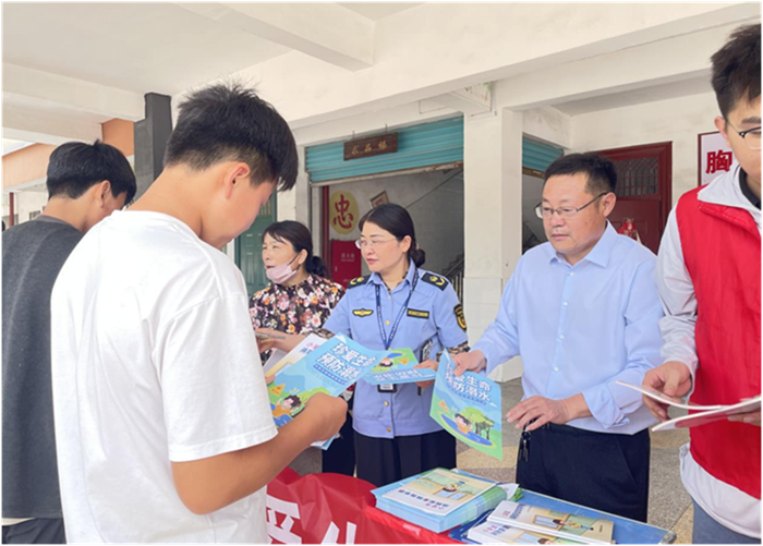 6月7日,在合肥五十中天鹅湖校区考场外,穿旗袍的家长和维持考场秩序的交警、志愿者们共同为考生加油。