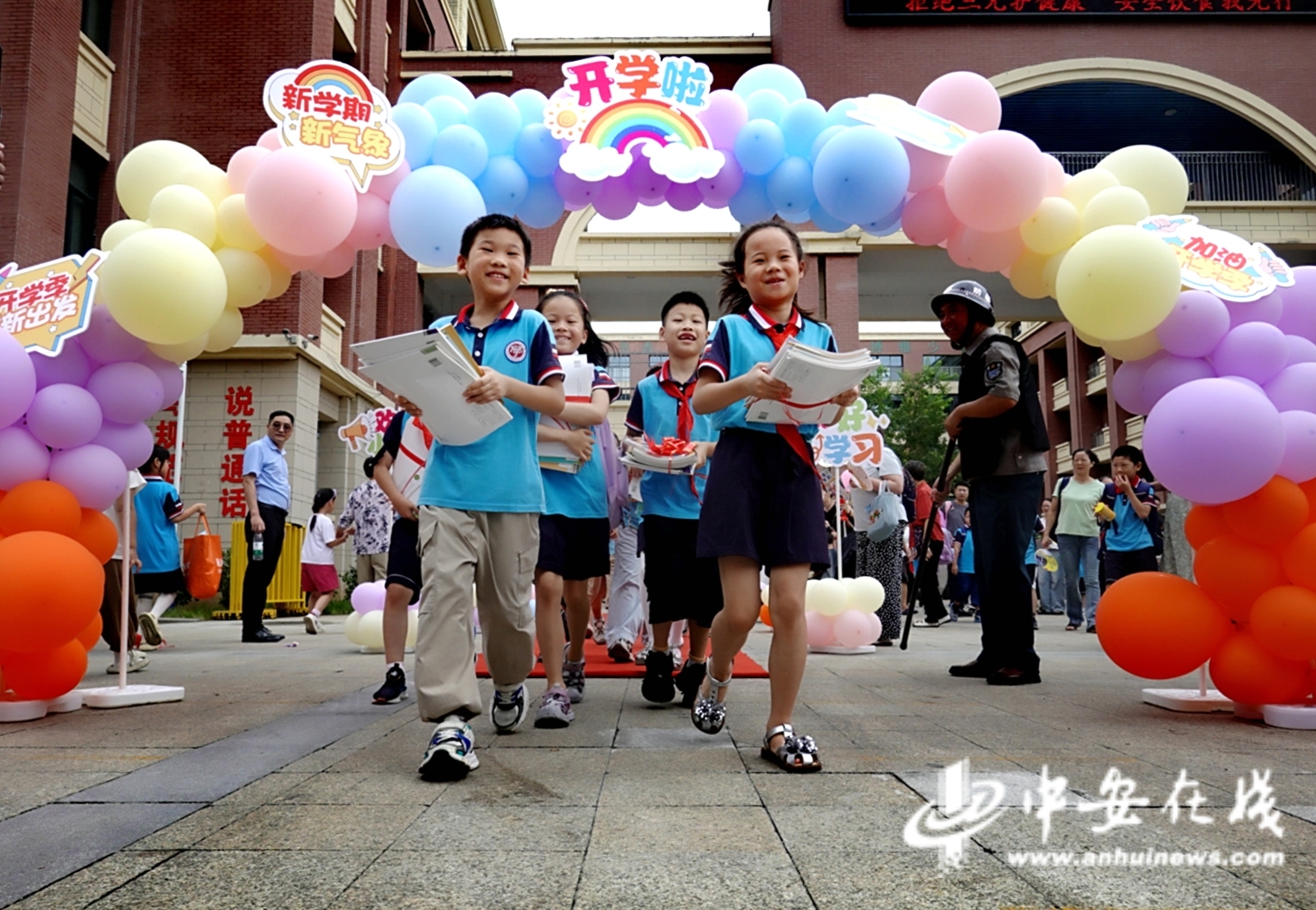 中安在线、中安新闻客户端讯 8月31日,在合肥市肥东县新安江路小学,领到新书的学生们开心地奔跑在校园里。当日,合肥各地中小学迎来秋季开学季,学生们安全有序返校报到,领取新书,喜迎新学期的到来。(许庆勇 记者 刘玉才)