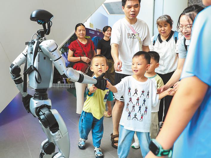 2025年全国科普月安徽省暨合肥市主场活动于9月7日在省科技馆启动,现场有70余家单位展示聚变能源、人工智能等“硬核”科技。观众可体验机器人奏乐跳高、“合肥造”灵巧手机器人,欣赏小学生自制新能源车、大学生模型火箭,了解无人艇水质监测和盾构机隧道施工等科技应用。活动通过互动展品、科学表演和无人机演出等形式,为市民带来一场科普盛宴。 记者 杨锋 摄