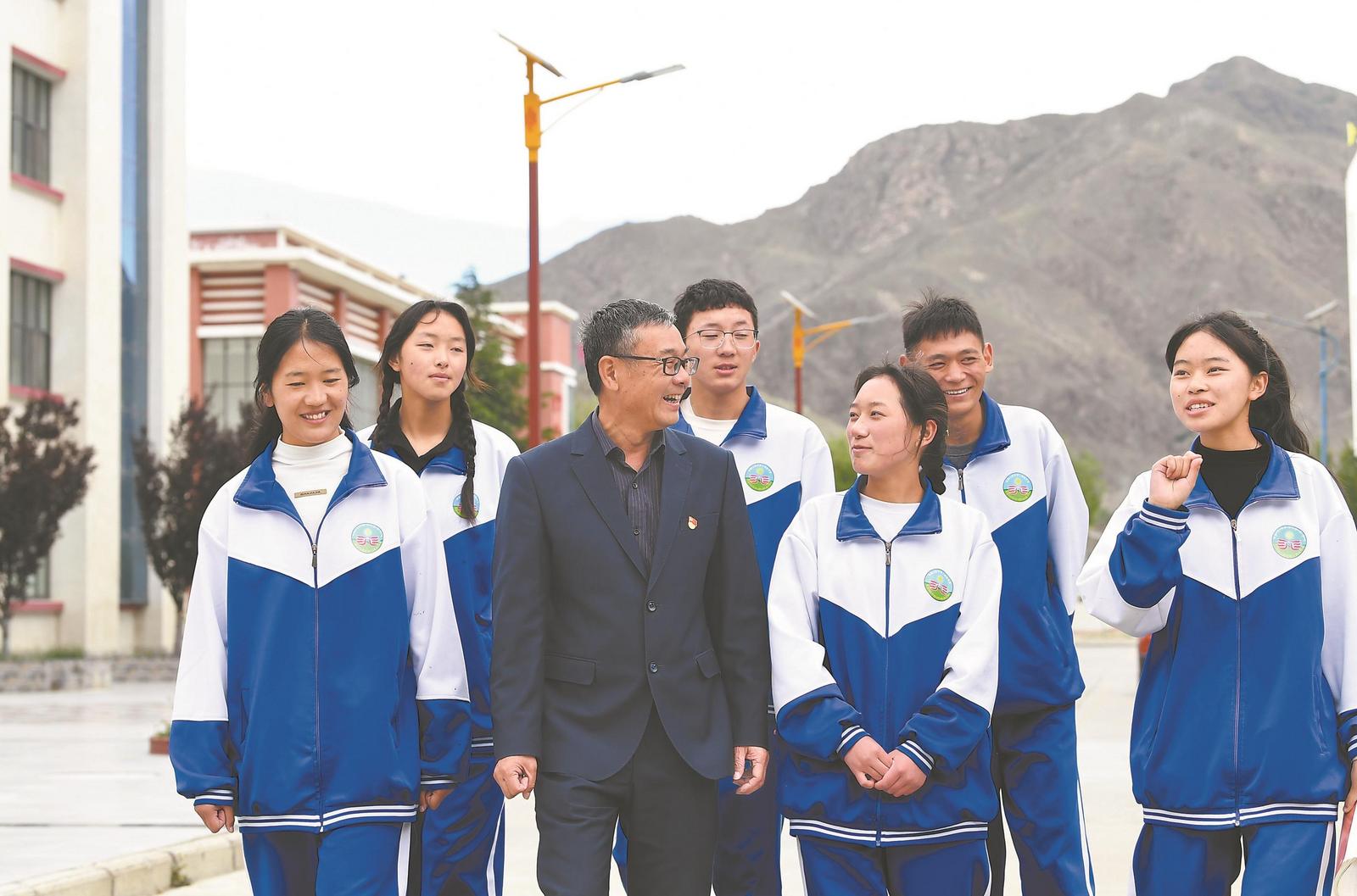 “去年8月,聂校长第一次来学校。他一进校就跟着我们四处走动,了解学校的发展情况,跟每一位老师进行交流。”洛桑多吉说,“那几天,我能明显地看出来聂校长身体不适,出现了高反,但他一直全情投入到工作中。一名老同志能如此坚持,非常打动我。”