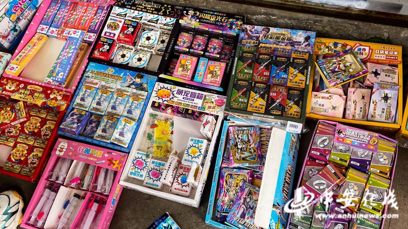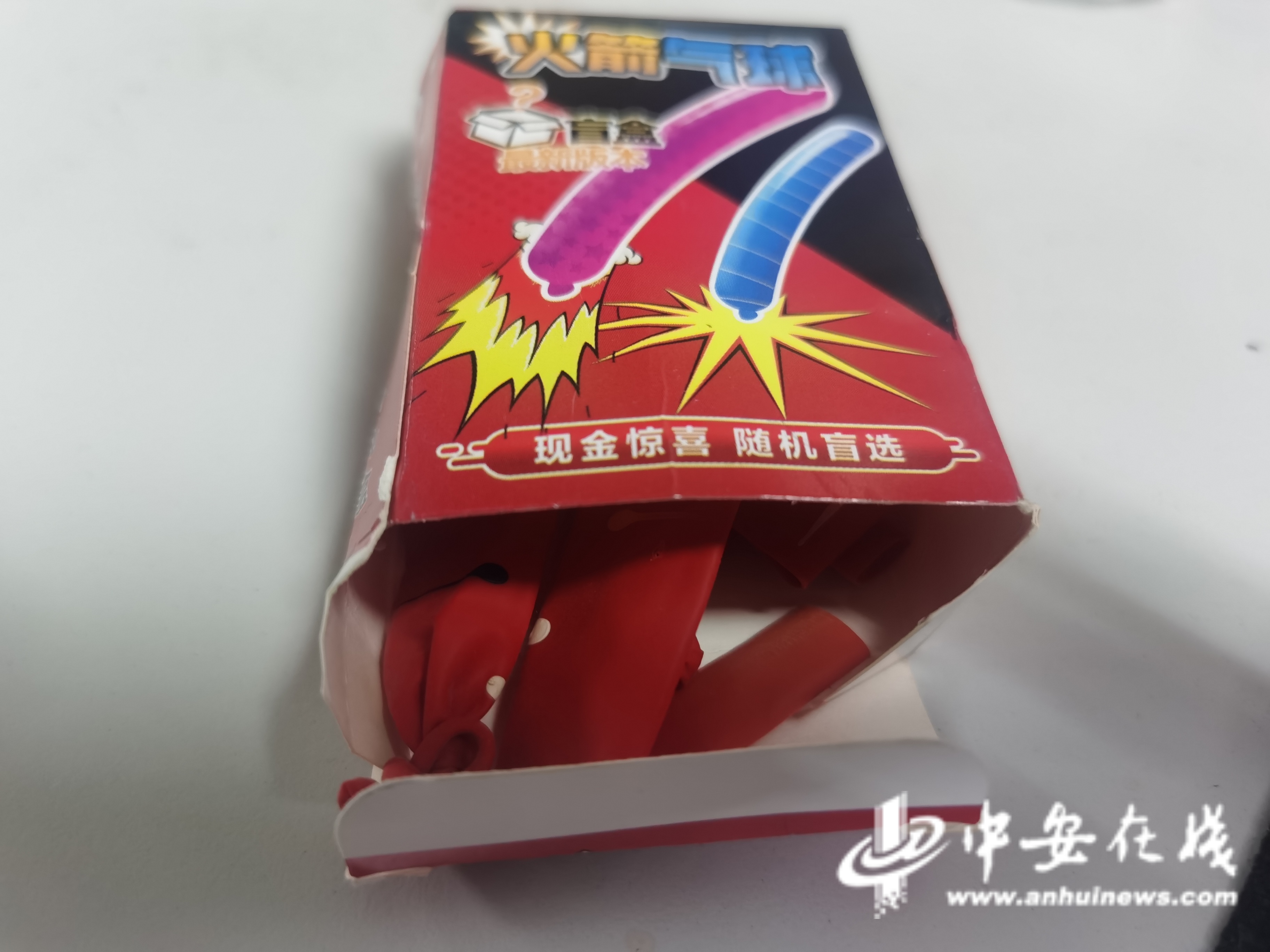 在安庆路第三小学附近的文具店中,记者又看到了晚会曝光的类似盲盒产品。这些“三无”盲盒琳琅满目,记者花1元买来一个,打开后则是4个红色气球,不仅包装简陋还充满刺鼻气味。