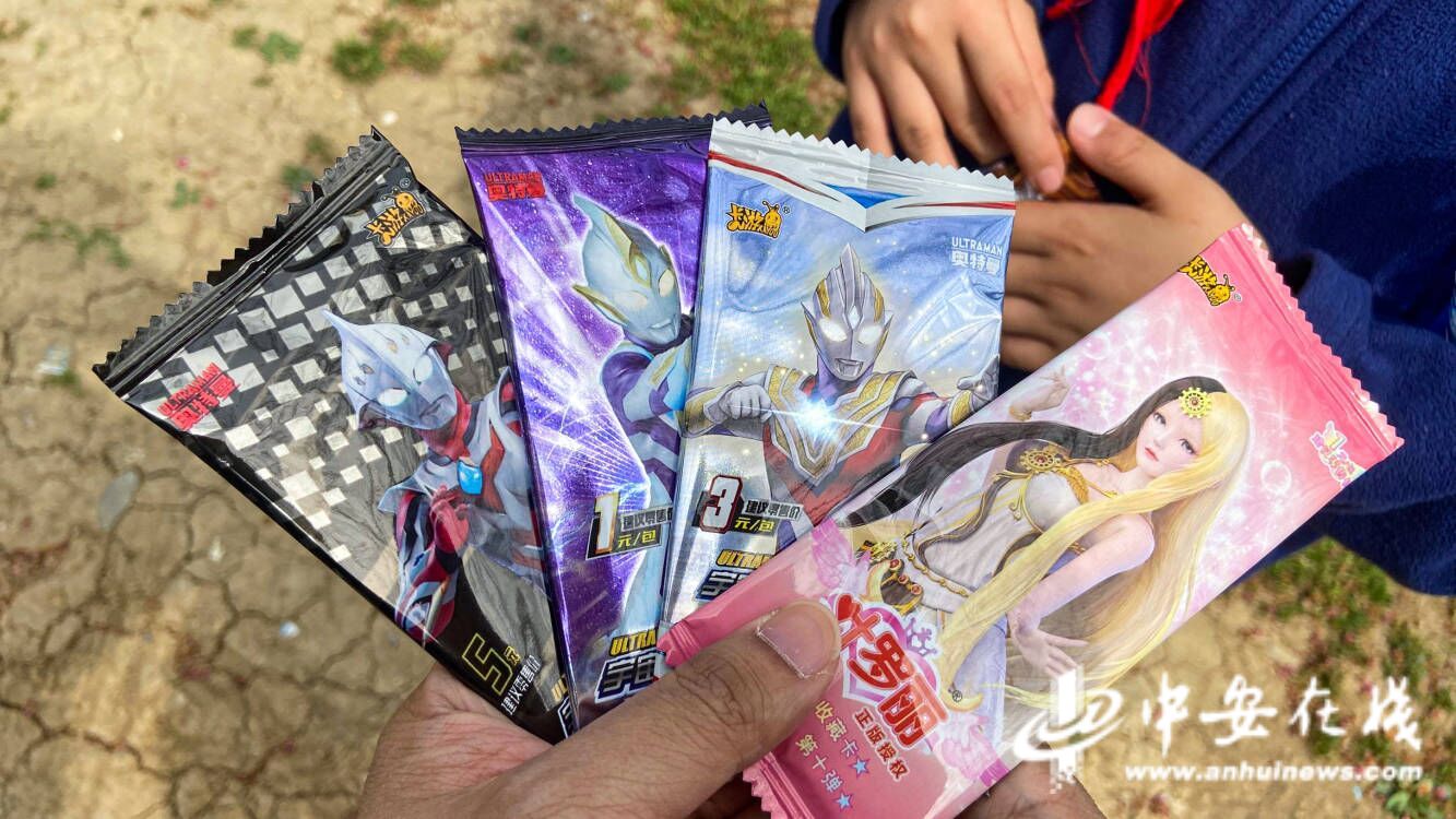 而在南门小学、南门小学桐城路校区和琥珀小学等校园附近,还流行着一种“奥特曼”抽奖卡片。